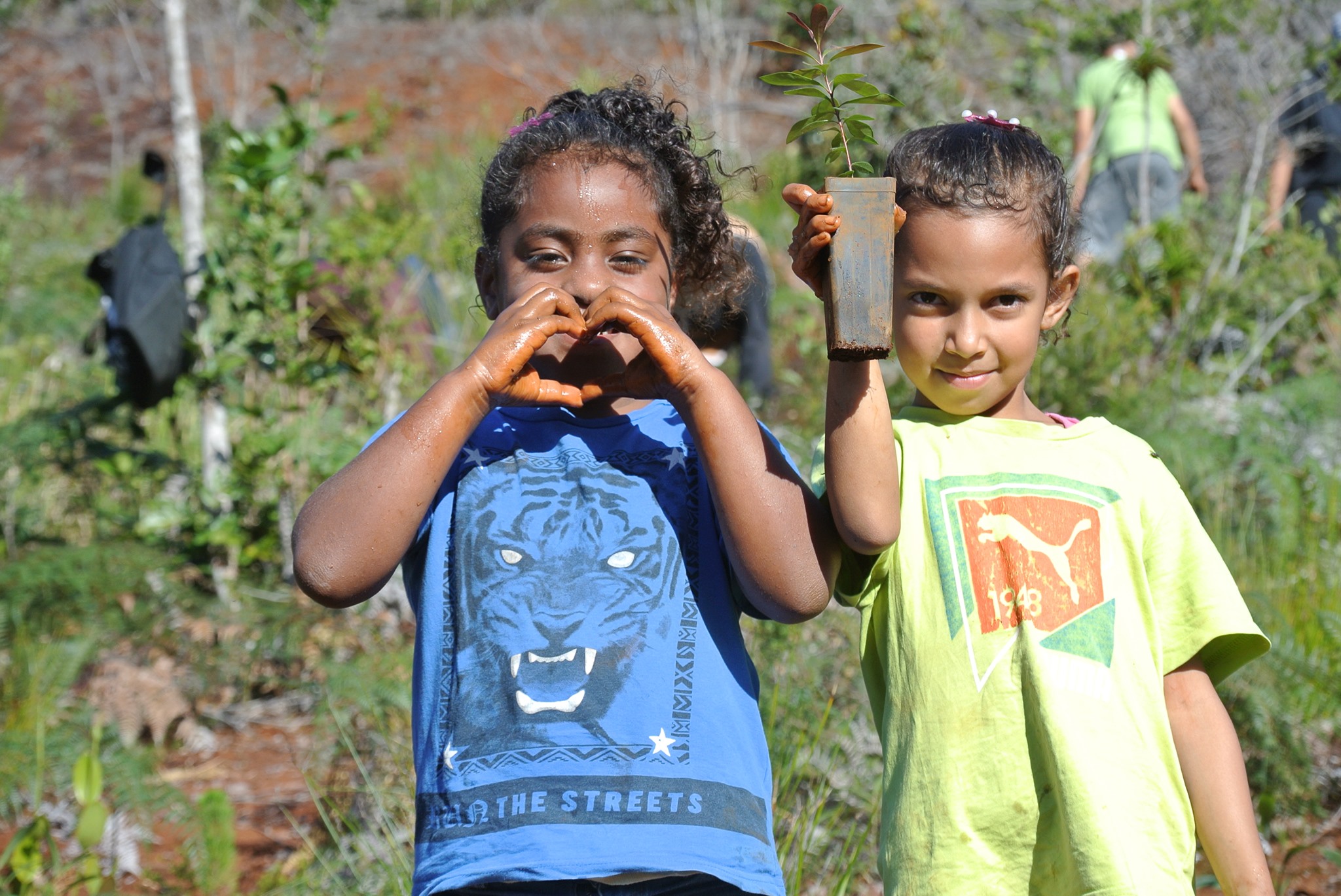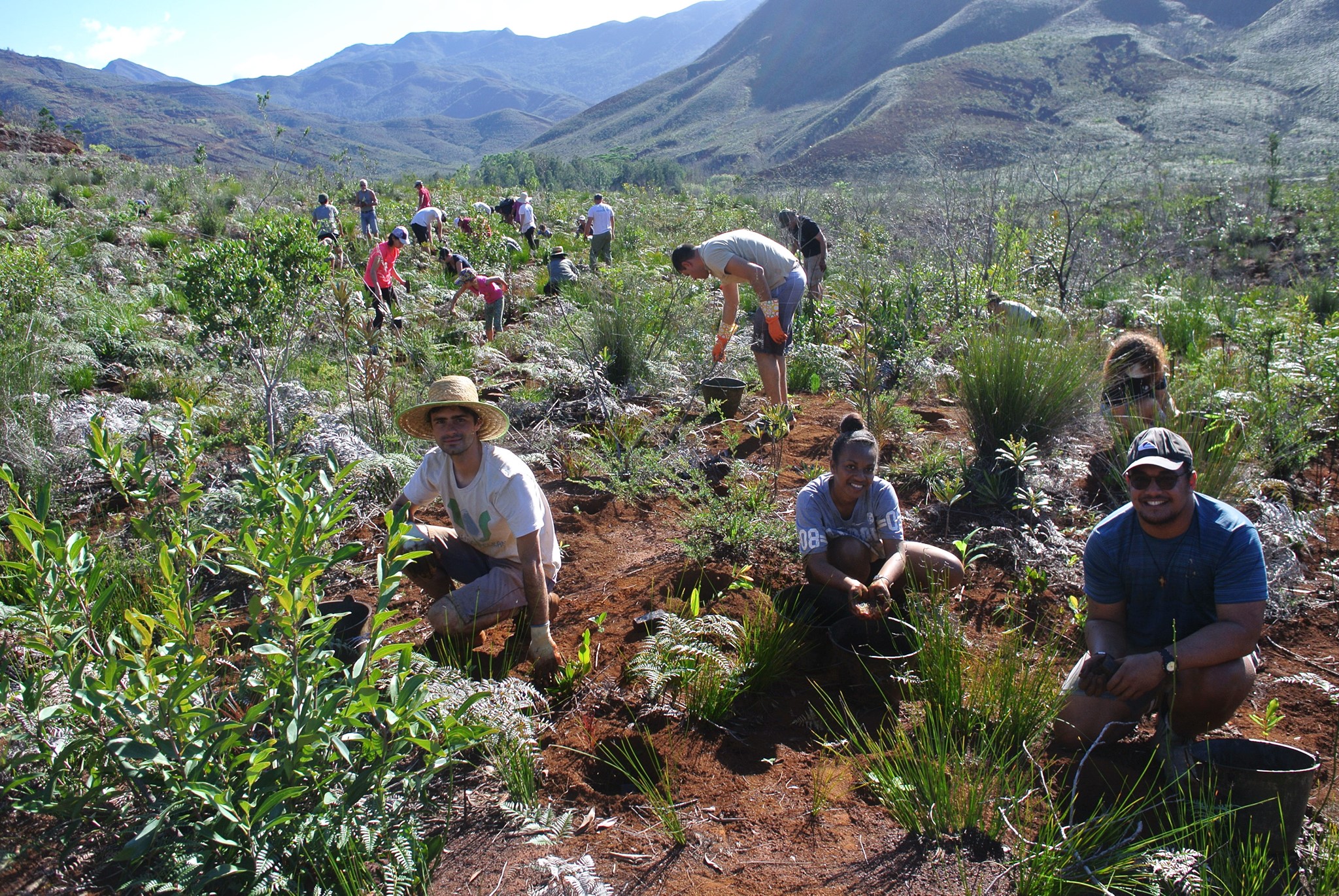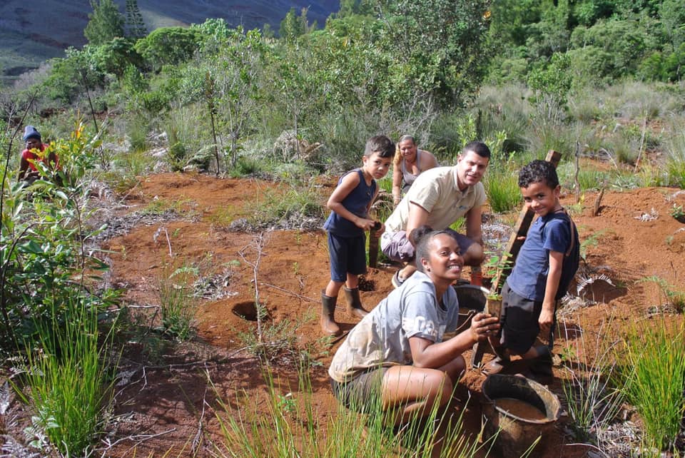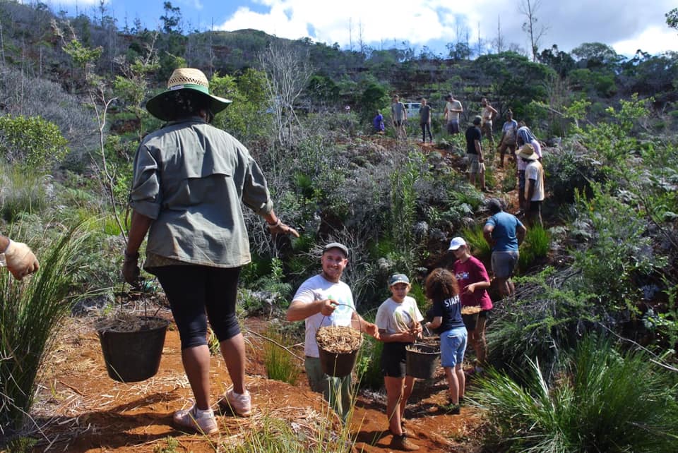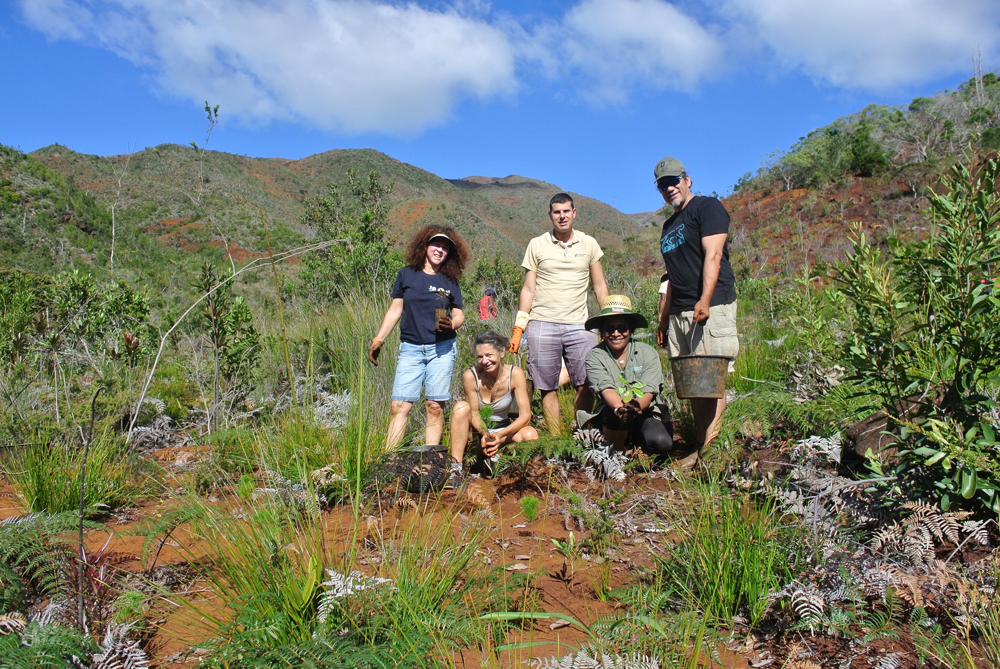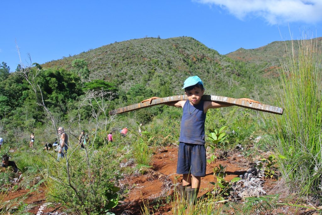 Malgré un temps magnifique pour aller en mer, une cinquantaine de bénévoles ont répondu présents pour mettre en terre les 2 000 arbres offerts par SIRAS Pacifique.