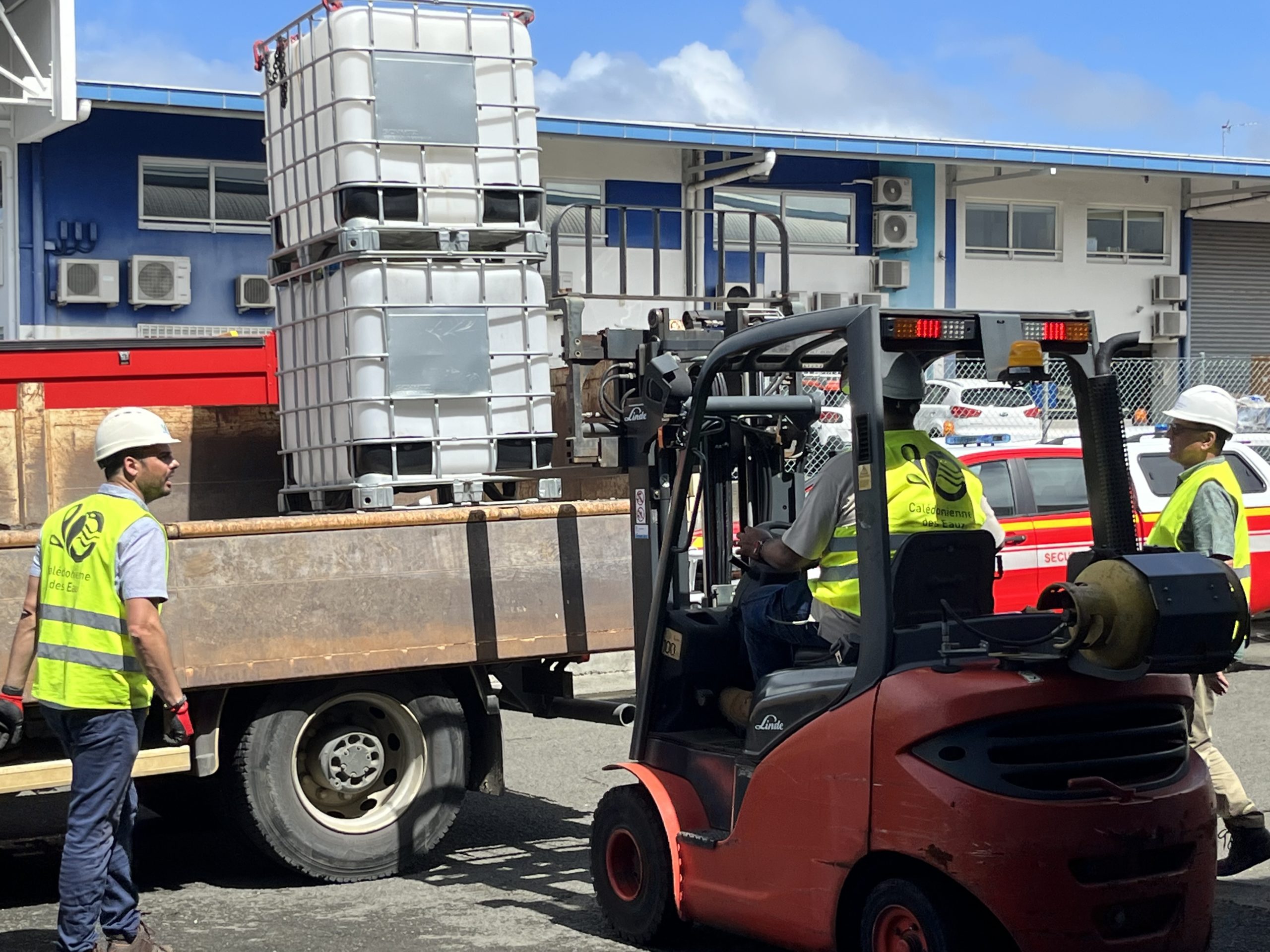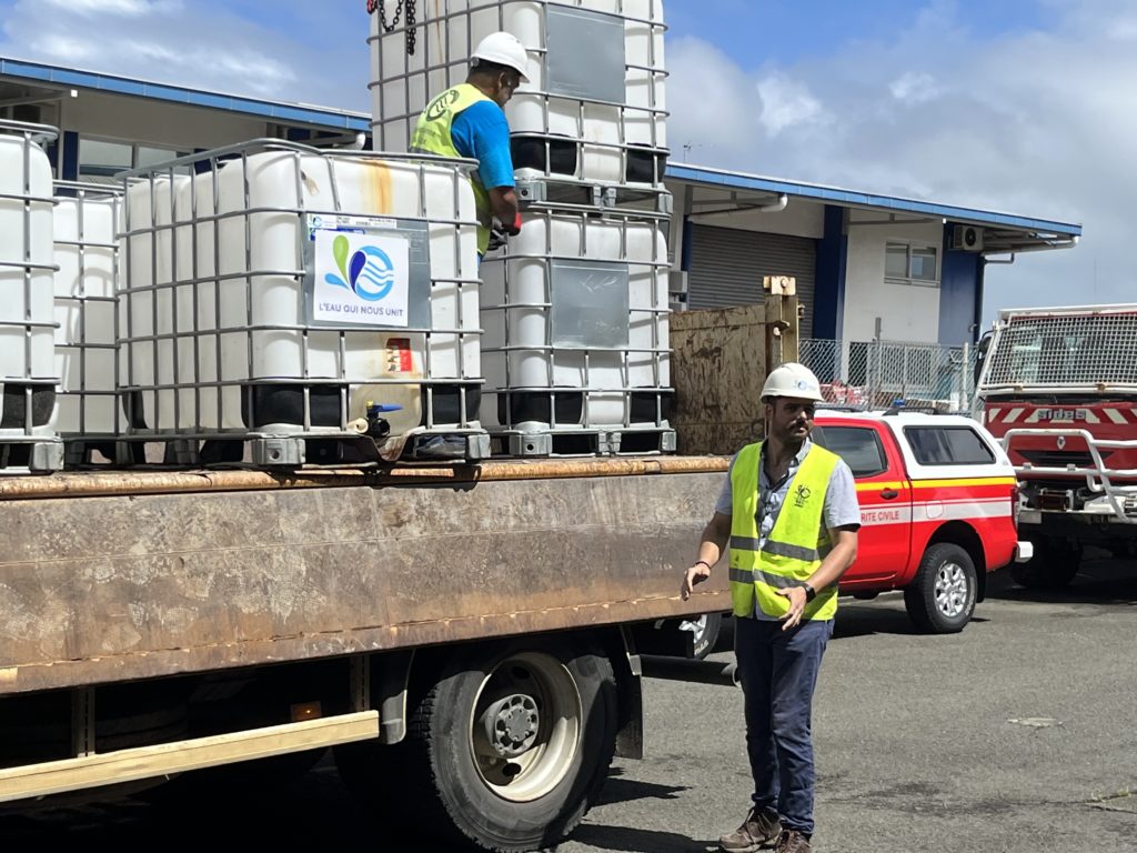 Sollicité le 1 er mars 2023 en soirée par le bureau de l’État Major Interministériel de Zone (EMIZ) du Haut-commissariat d’une part, et par la Direction de la Sécurité Civile et de la Gestion des Risques (DSCGR) de la Nouvelle-Calédonie d’autre part, la CDE a préparé et livré 8 cubi-containers le 2 mars en matinée.