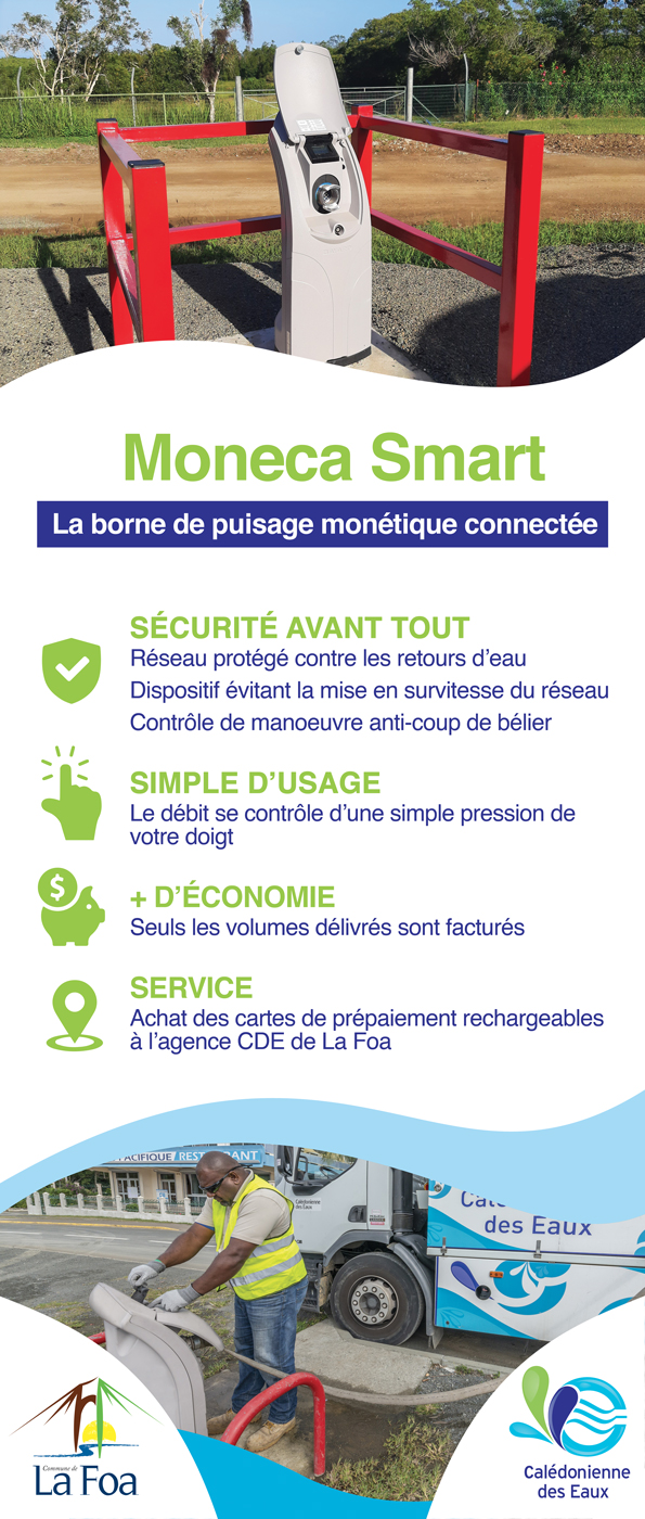 Les particuliers peuvent se rendre à l’agence clientèle de la Calédonienne des Eaux de La Foa pour se procurer une carte de puisage prépayée.